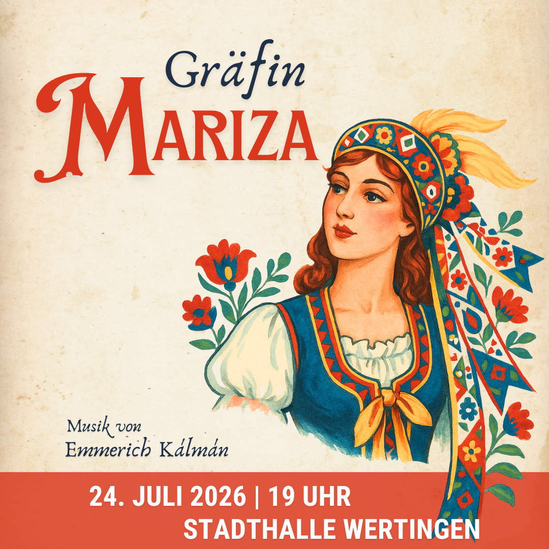 Ein spritziges Meisterwerk voller Charme, Witz und unwiderstehlicher Melodien: Die Wertinger Festspiele bringen mit Emmerich Kálmáns Operette„Gräfin Mariza“einen Klassiker auf die Bühne, der die glanzvolle Welt der ungarischen Operette mit Leidenschaft und Temperament erstrahlen lässt.
